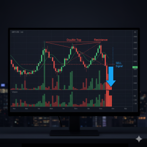 الگوی سقف دو قلو (Double Top) الگویی بازگشتی است که پس از یک روند صعودی شکل میگیرد و نشاندهندهی ضعف خریداران است.