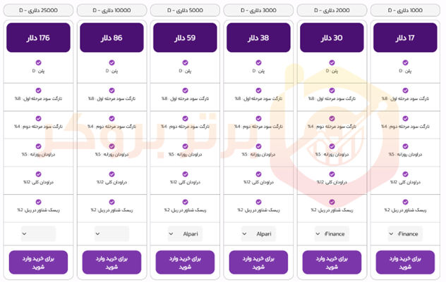 حداکثر افت سرمایه روزانه بین 2 تا 6 درصد (بسته به پلن)